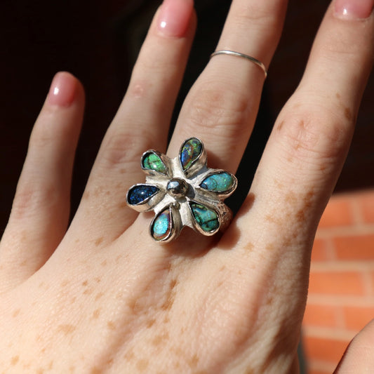 Sterling Opal Flower Ring, 8
